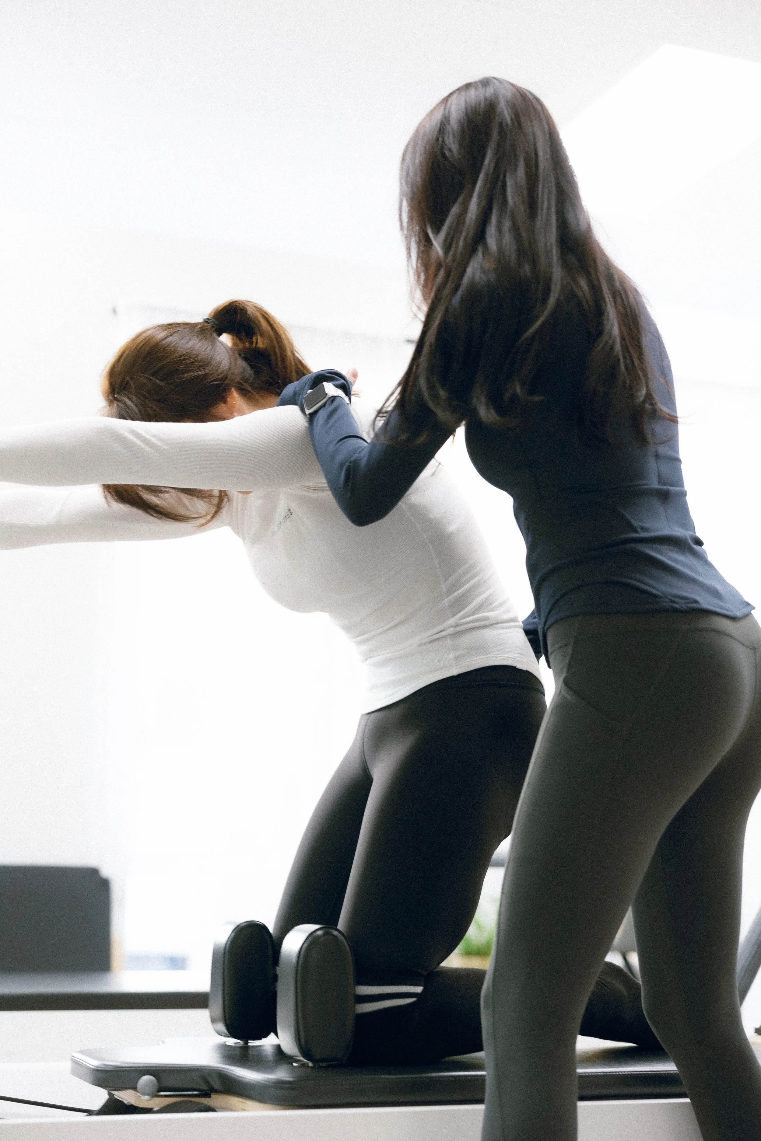 Co-founders, Ella Park, a physical education teacher (ROK) and former pro athlete, and Tracy Lee, a certified Pilates instructor with over 10 years of experience. Both discovered the power of Pilates through their own recovery journeys—Ella after multiple surgeries, and Tracy after overcoming chronic shoulder and back pain. Together, they created a science-based, movement-driven approach to Pilates education that empowers instructors and clients to move with purpose and precision.